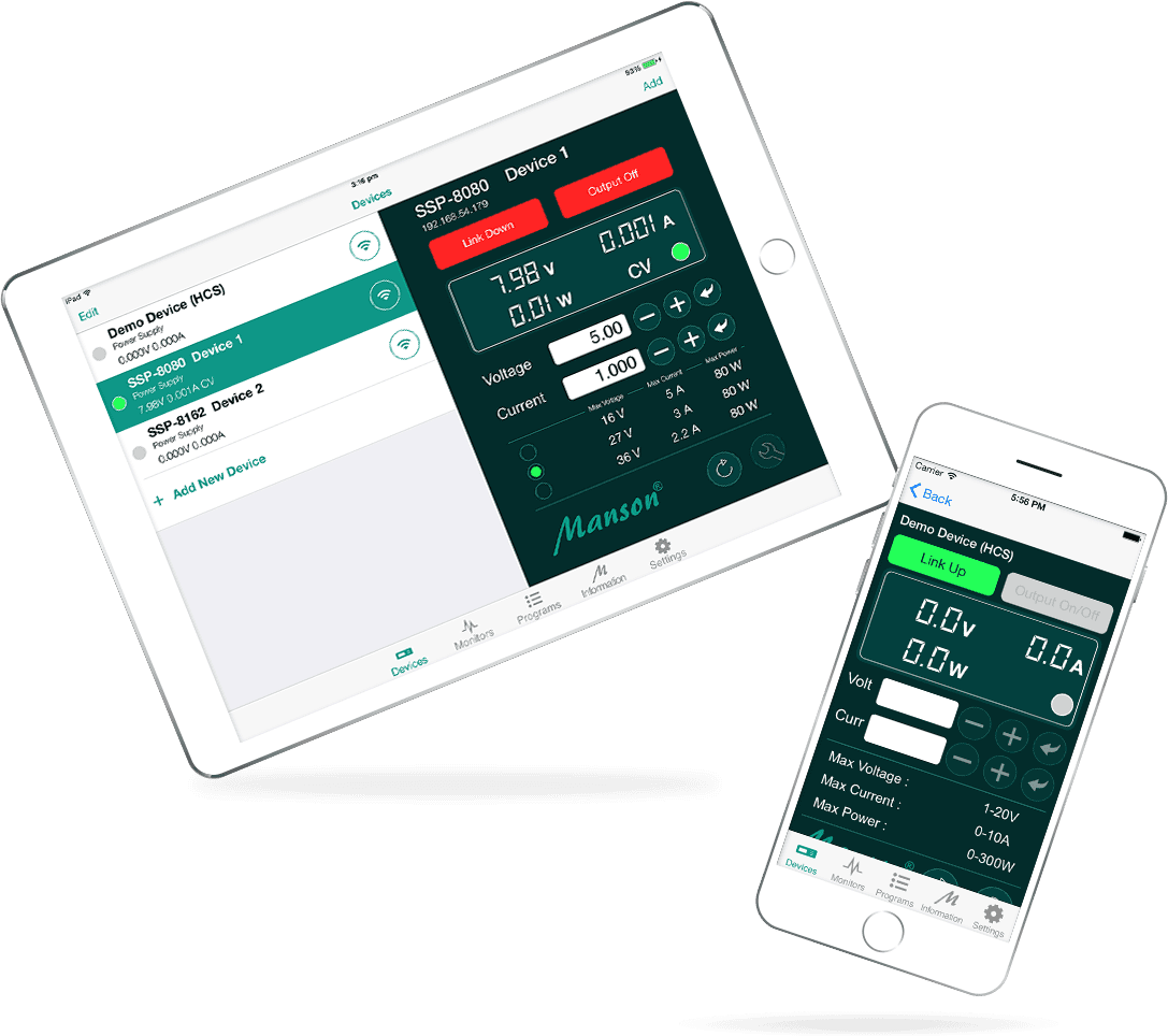 To remote control Manson Power Supplies and DC meter over network.