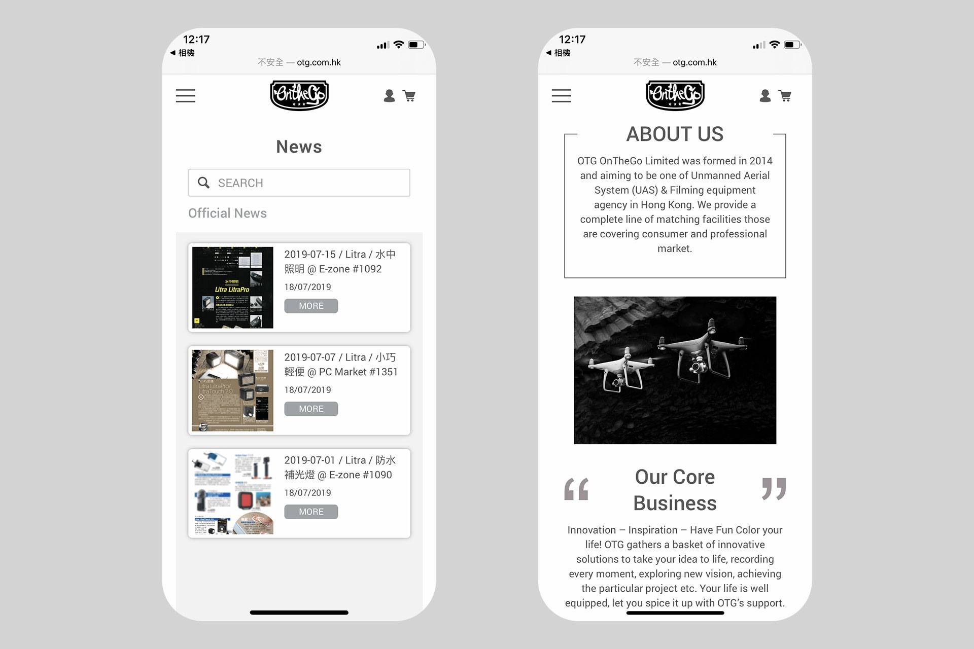 OTG OnTheGo Limited was formed in 2014 and aiming to be one of Unmanned Aerial System (UAS) & Filming equipment agency in Hong Kong. We provide a complete line of matching facilities those are covering consumer and professional market.